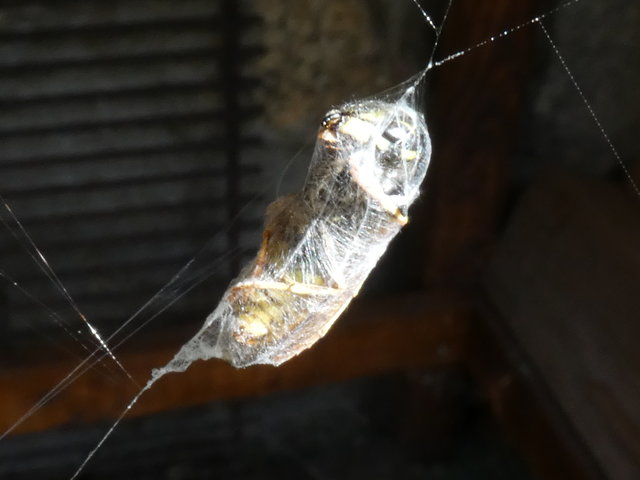 Ick freue mich im Sommer, wenn die Kreuzspinnen so richtig fett werden. Sagenhaft mit was die so alles fertig werden wenn ihnen erstmal Beute in's Netz gegangen ist und wie schnell das