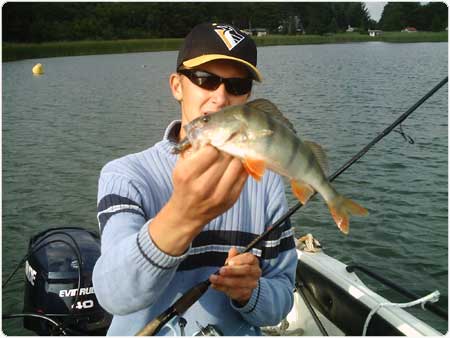Ein paar Würfe später knallt mir ein Hecht auf den Gummi und verlangt dem Gerät einiges ab. Jedoch schüttelt er sich vor dem Boot los und muss somit nicht ins Boot. Dann gab’s auch mal wieder Barsche.