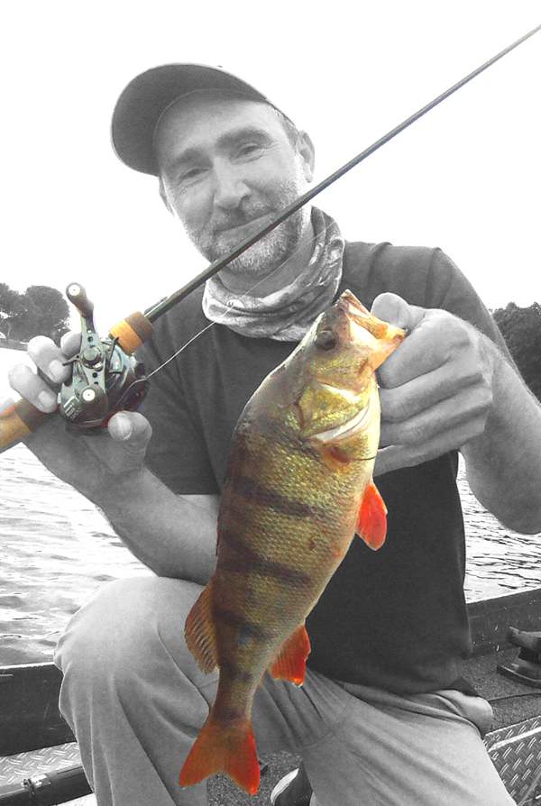 Aber es gab auch Tage, an denen mich die „Bullen“ unter den Wobblern überrascht haben. Ich erinnere mich zum Beispiel an einen Angeltag auf der Havel, an dem Georg Baumann den Jochen und mich für die DVD vom Sonderheft Barsch filmen sollte. Jochen und ich fingen Barsch auf Barsch auf Finesse-Rigs. Allerdings keine großen. Von den kleinen hatte der Georg dann irgendwann genug im Kasten und nahm sich die Zeit für ein paar Würfe. Als er sich einen Rapala-Crankbait in den Karabiner klinkte, dachte ich mir noch: ‚Mensch, Georg! Über 7 Metern mit ‚nem Crank – das wird doch nix.‘ Und da hing auch schon der erste dicke Barsch des Tages am Haken. Und es sollte nicht der letzte gute Havelstachelritter bleiben, den der gemütliche Schorsch in seiner unnachahmlichen Art da ganz lässig herauskurbelte.