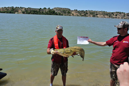 Was „als reine Gaudi“ angedacht war, sollte sich am ersten Tag zur knallharten Arbeit entwickeln. 12 Welse mit einem Gesamtgewicht von 307,5 kg konnten die drei Bayern bereits am ersten Tag aus dem Wasser zerren. Damit lagen sie völlig überraschend auf Platz 2 der Gesamtwertung! Und obwohl im weiteren Verlauf der Competition nichts mehr ging, hat das ausgereicht, auch im Endklassement den zweiten Platz zu belegen! Da dürften zur Feier des Tages dann sicher ein paar spanische Bier-Doserln dran geglaubt haben…